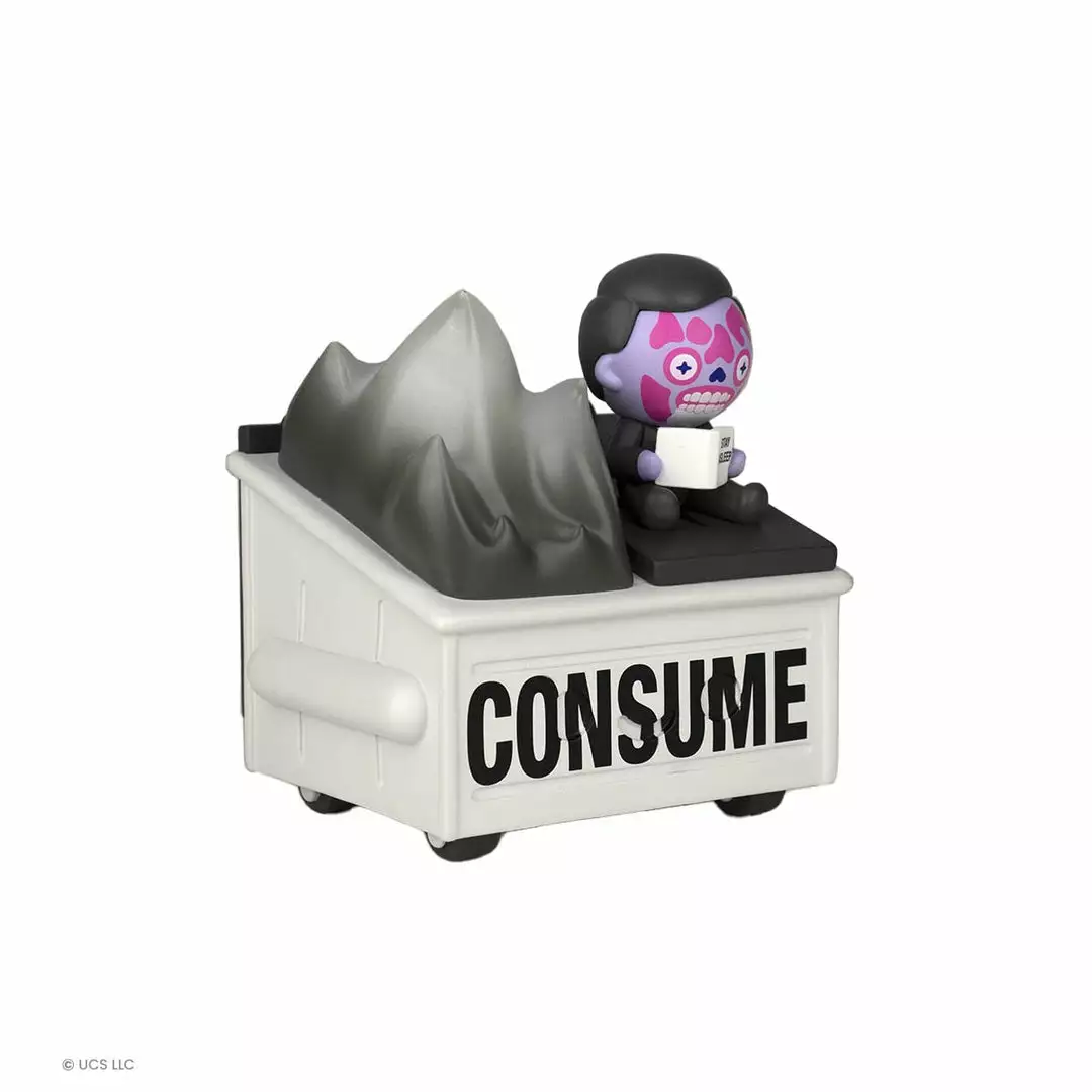 Inspired by one of our favorites films, THEY LIVE, we have teamed up with the awesome folks at 100% Soft and put a new (horrific) spin on their super popular Dumpster Fire Soft Vinyl toy. This one is ready to CONSUME, and is available during SDCC 2022.Â