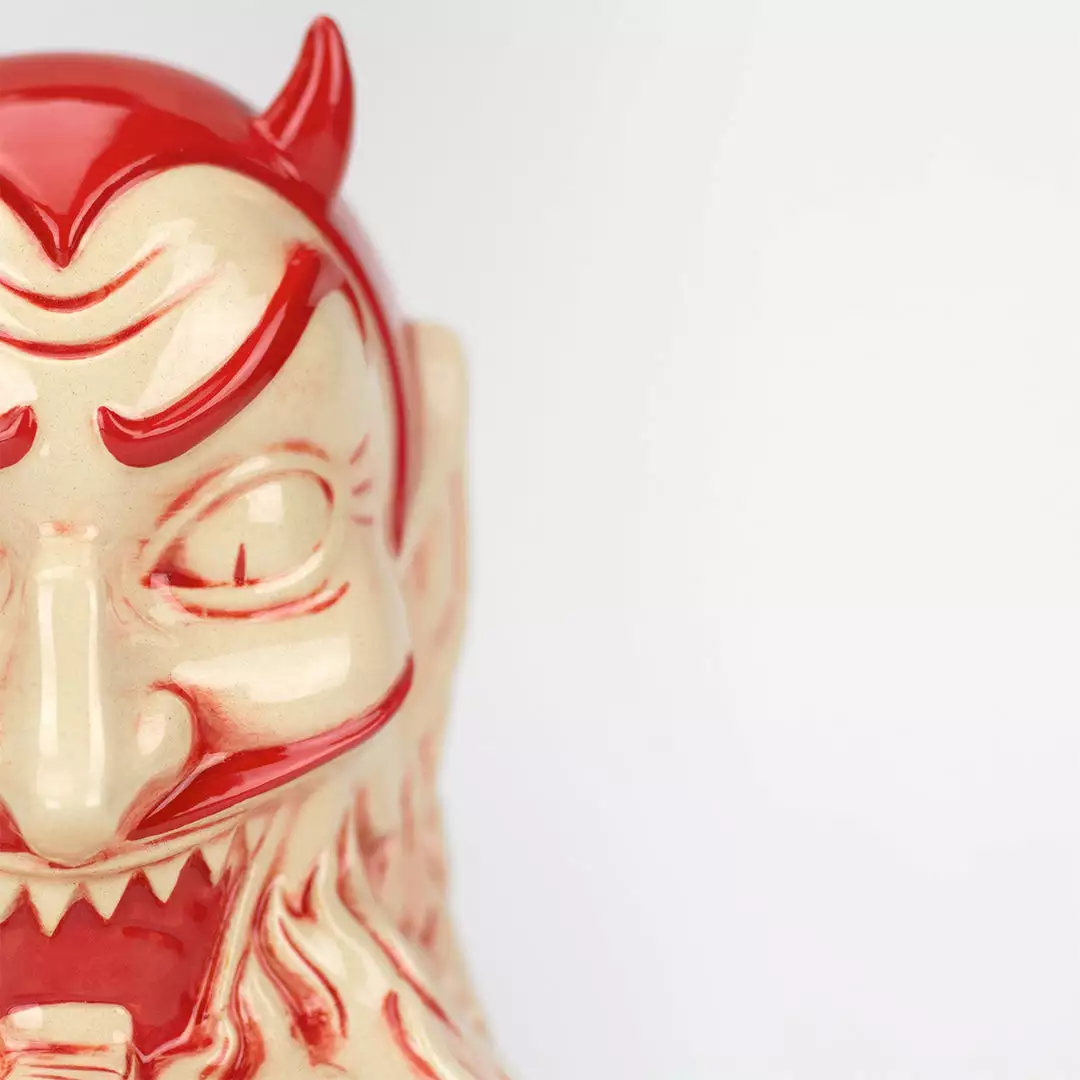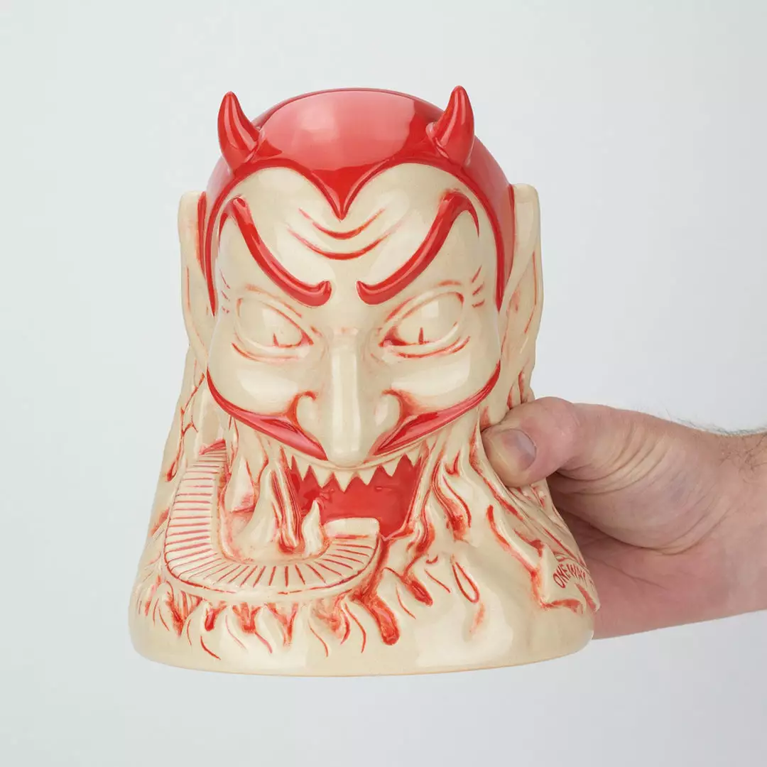 From artist Doug P’Gosh and sculptor Tufan Sezer, Ol’ Scratch comes knocking down your door to take you to Tiki Hell. Fit for a carnival, this punch bowl-sized terror stands at approx. 7.25” tall and holds 32 oz.