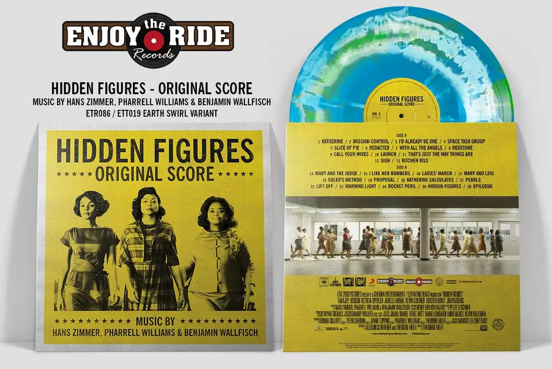 Enjoy The Ride Records and Enjoy The Toons Records are happy to announce Hidden Figures Original Motion Picture Score. This Golden Globe Nominee (Best Original Score) was created by Hans Zimmer (The Lion King, True Romance, The Dark Knight Trilogy), Pharrell Williams (N*E*R*D, The Neptunes, Despicable Me  films), and Benjamin Wallfisch (It, Blade Runner 2049, Hellboy, Shazam!) for the 2016 biographical drama about three black female mathematicians who were working for NASA during the Space Race.