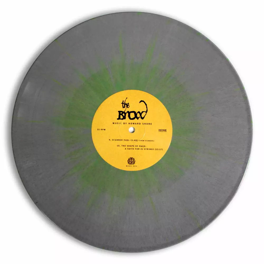Available for the first time ever on vinyl, Scanners/The Brood features cover art by Sam Wolfe Connelly on both sides of the packaging, and is pressed on 180 gram vinyl with two colorway options: a Scanners-themed Bone Vinyl with Brown & Red Splatter, mimicking the infamous head explosion, and a Brood-themed Gray Vinyl with Green Splatter, to represent Nola’s external womb.