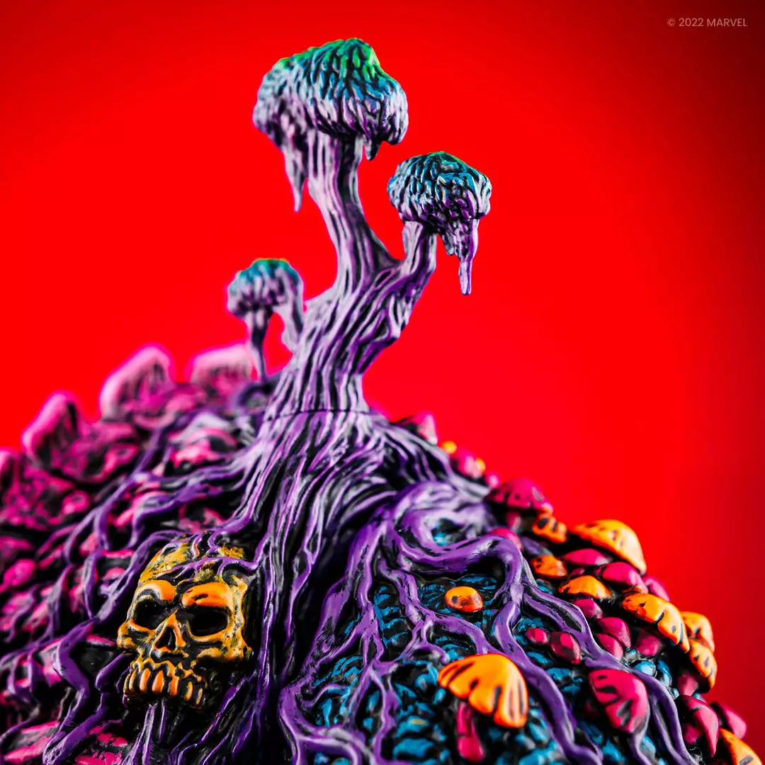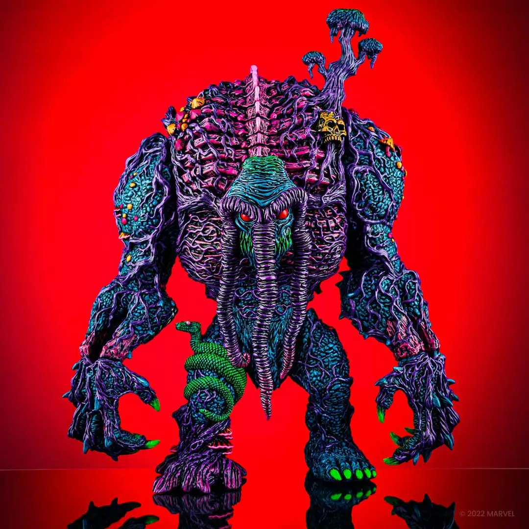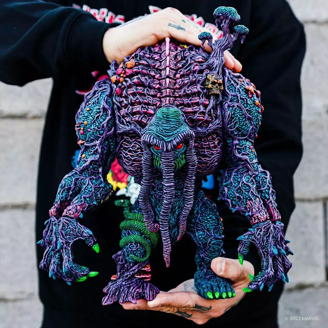 Emerging from the swamp, it’s Marvel’s Man-Thing! This exciting collaboration with famed toy Designer James Groman (Madballs, Kaiju Killer, King Korpse) brings his unique style to full display with this limited edition Man-Thing Soft Vinyl Figure – Psychedelic Variant. With 3 Points of articulation, this massive 12 inch tall figure is a sight to behold. James poured so much thought into this sculpture that you can get lost in the details for hours.