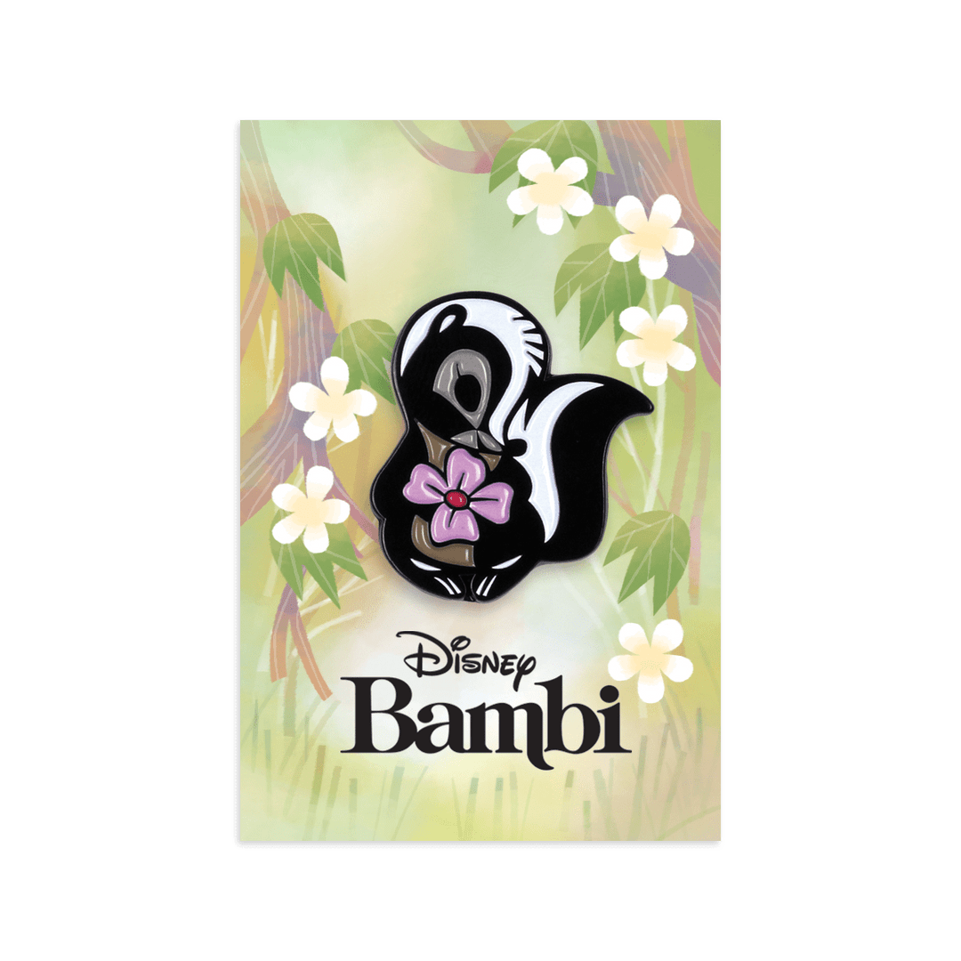 Illustrator Joey Chou, whose impressive resume includes designing rides for Tokyo Disney, has designed a small collection of BAMBI enamel pins! His character design provides a modern, minimalist rendition of the timeless characters – doe-eyed Bambi, spirited Thumper, and bashful Flower. Chou’s packaging pays homage to the film’s beautiful backgrounds, a soft impressionist style of the Eastern American woodlands. The film is a love letter to nature, friendship, young love, and family – and it taught generations of children what it’s like to cry because of a touching and powerful film.