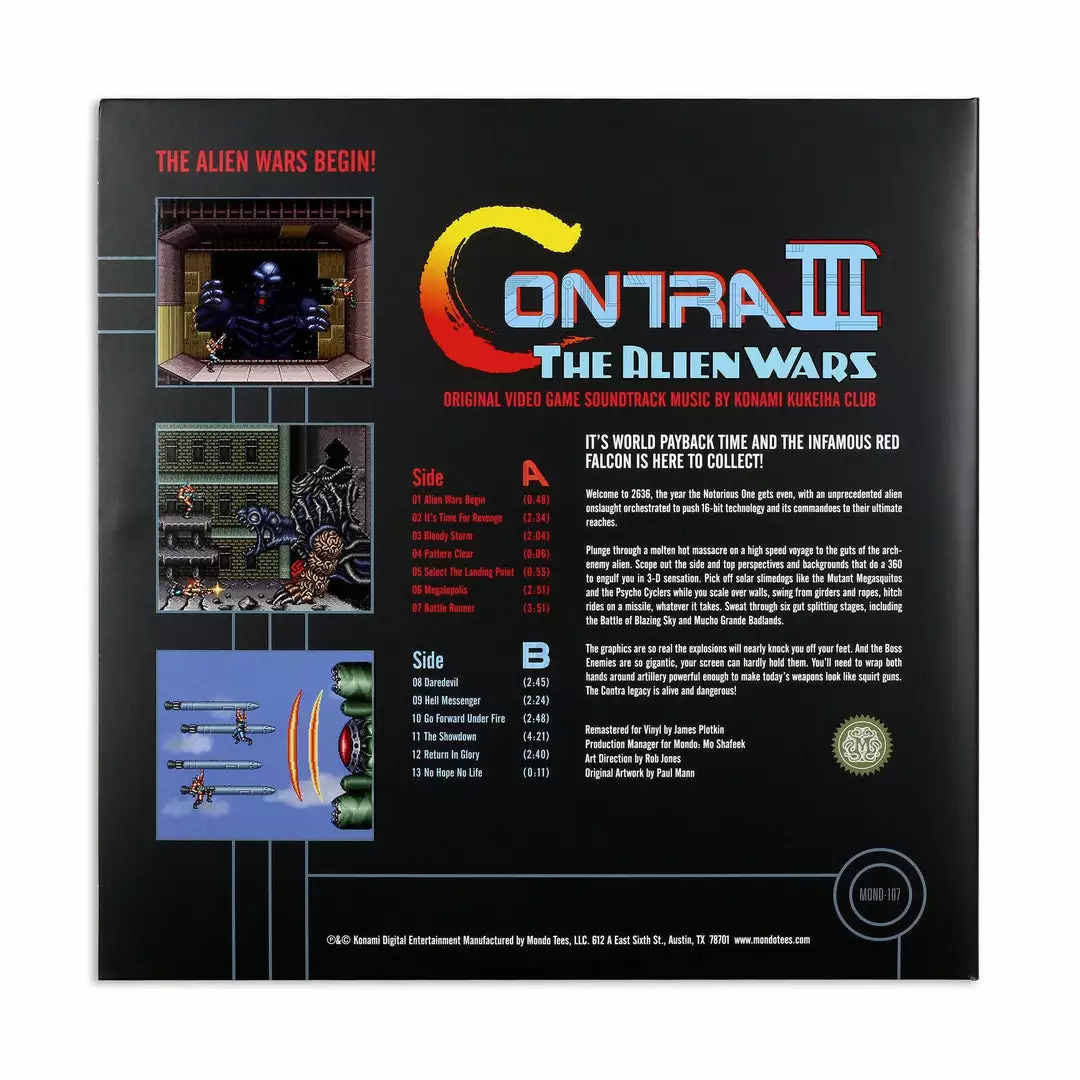 Mondo is proud to celebrate the 30th anniversary of the Contra franchise with the premiere Vinyl release of the original soundtrack to the 1992 Super Nintendo sequel: The Alien Wars.