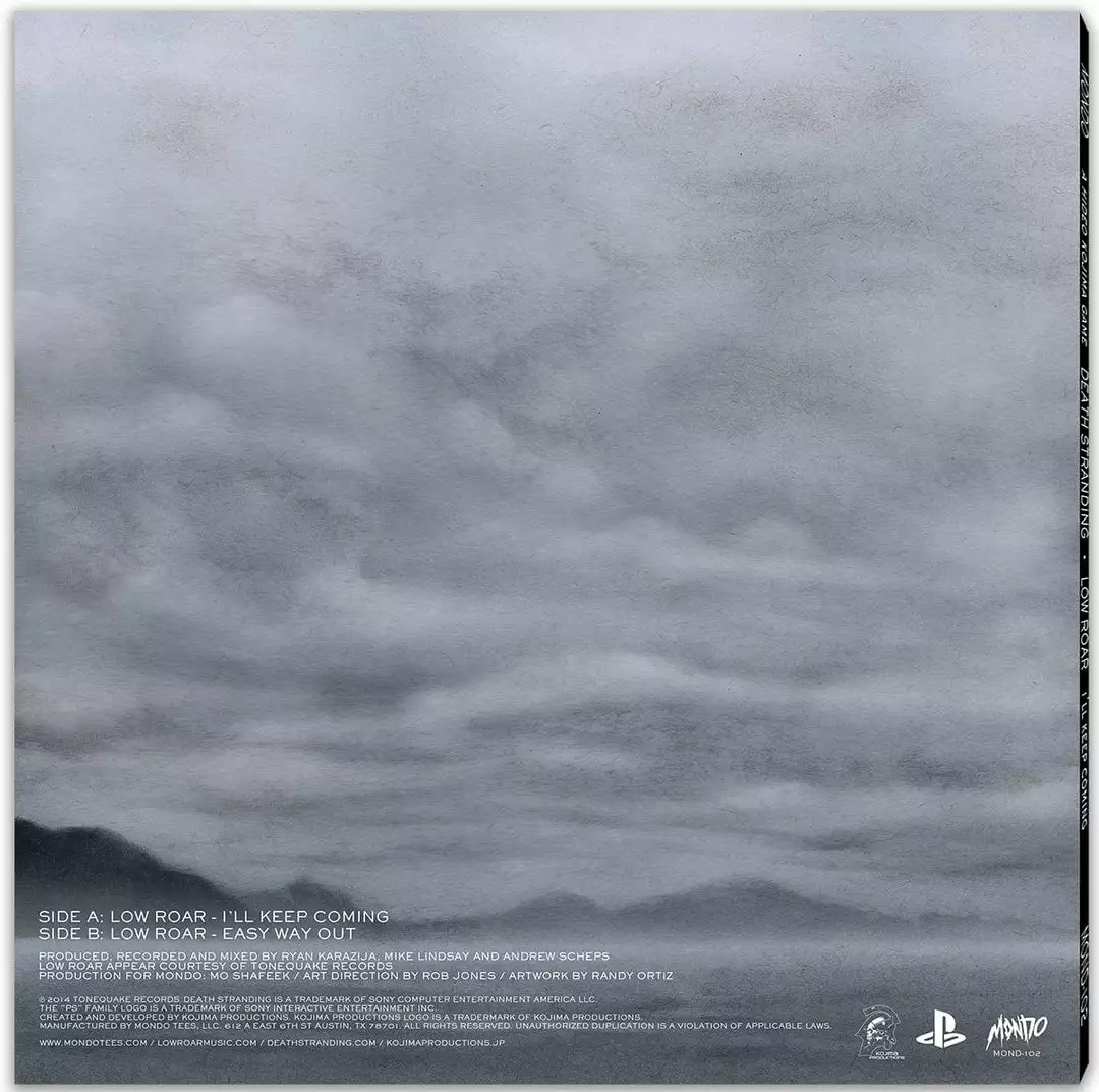 Mondo, in conjunction with Kojima Productions, is proud to present a limited edition 12″ Single of Low Roar’s songs “I’ll Keep Coming” and “Easy Way Out”, as featured in the trailers for the forthcoming Hideo Kojima game Death Stranding.