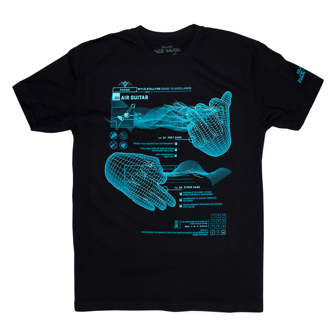 Artwork inspired by Bill & Ted Face the Music, designed by Matt Ryan Tobin. Printed by Impact Merchandising on Next Level Apparel cotton tees with printed interior label.