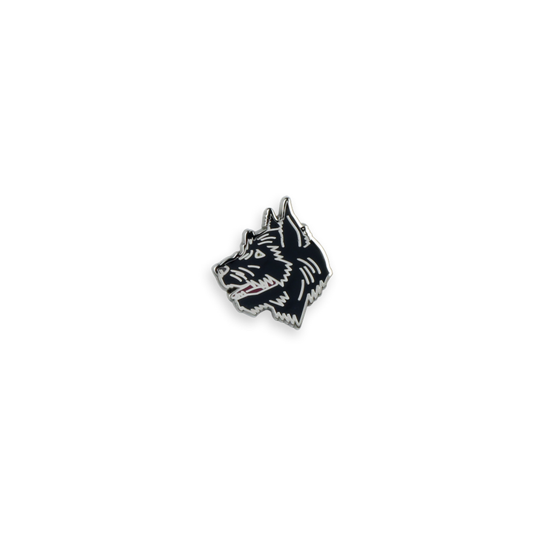 0.75″ high hard enamel pin on shiny silver, single post with rubber clutch backing.