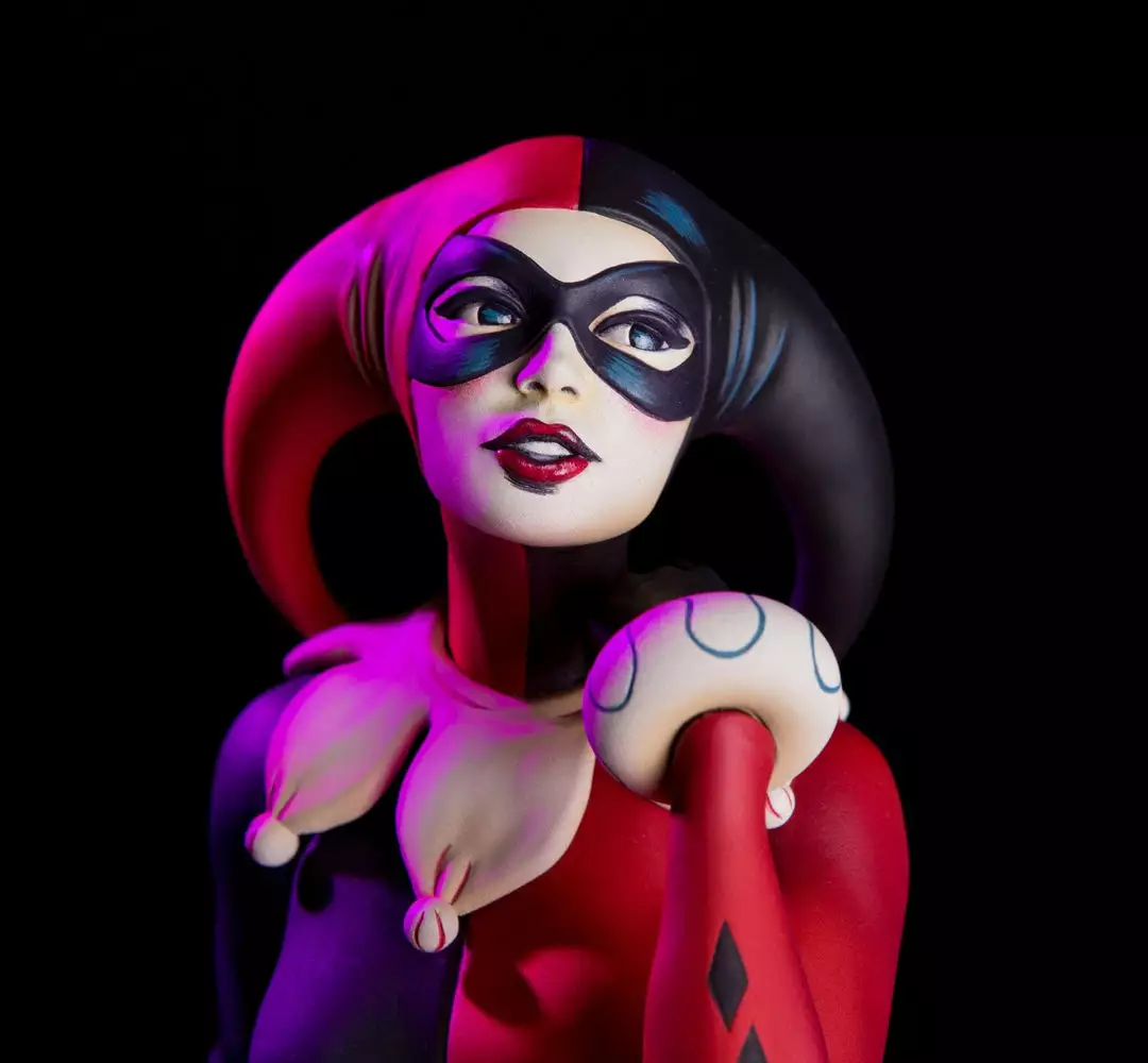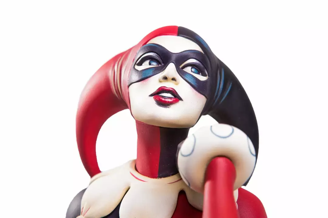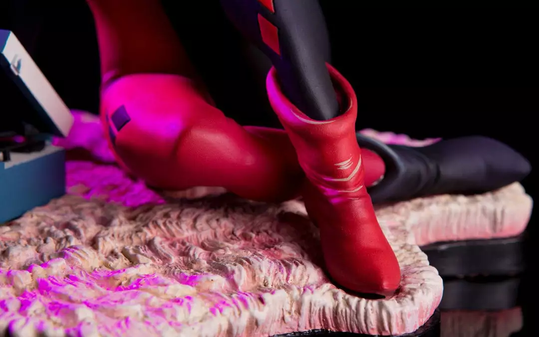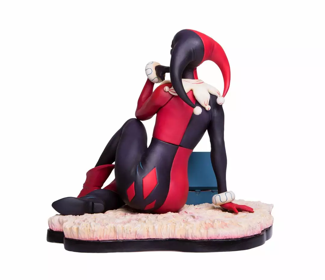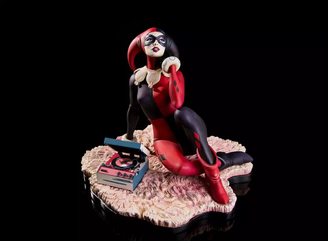 Based on the poster and 7″ vinyl record sleeve by Matt Taylor, the Waiting for My J Man statue features a lovelorn Harley Quinn, relaxing on a swanky shag carpet while listening to her favorite tunes, as she waits for a certain someone to come home.