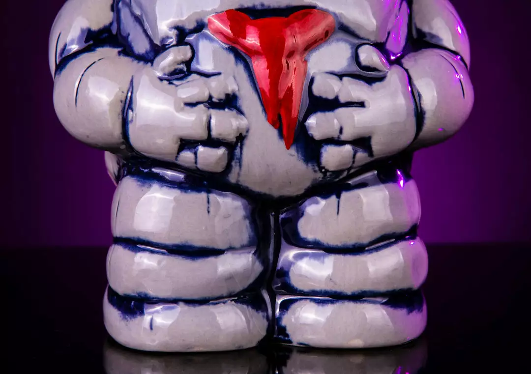 Choose the form of the Destructor, and hopefully this jolly giant marshmallow man pops in your head, and hand. Holding approx. 36oz of your favorite ectoplasmic beverage, this tiki-ized manifestation of something that could never ever possibly destroy us is ready for you to trap in your collection.