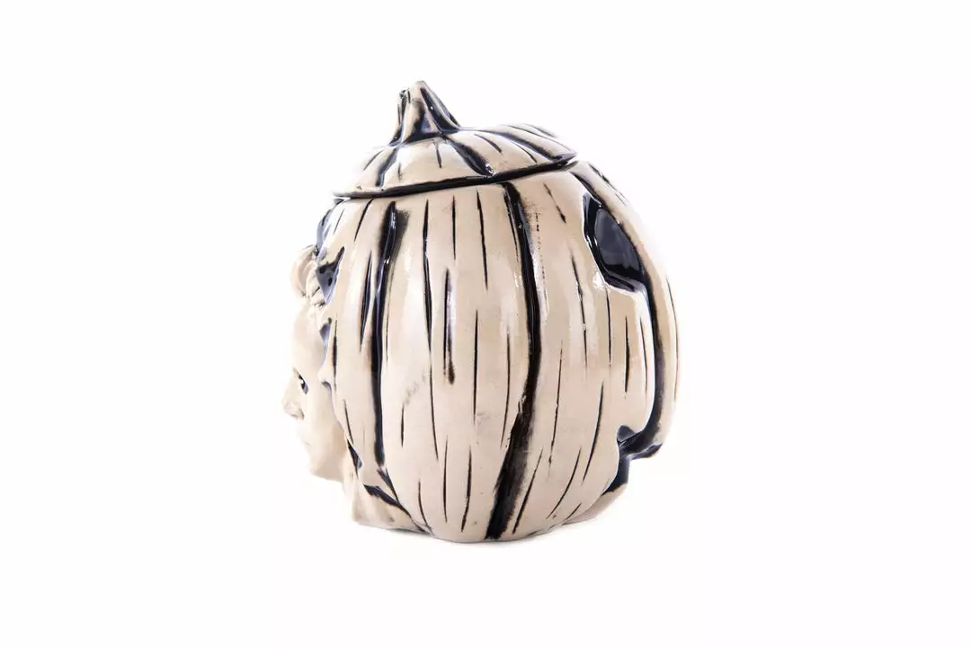 From the slasher classic Halloween comes our tiki mug, inspired by the jack-o-lantern from the opening credits, and featuring a “carved” Michael Myers on the back. Complete with removable pumpkin lid, one Slasher Swizzle Stick, and holds approx 17oz. Designed by: Mike Bonanno, Sculpted by: Tufan Sezer and Kristin Rousseau and Manufactured by Tiki Farm.
