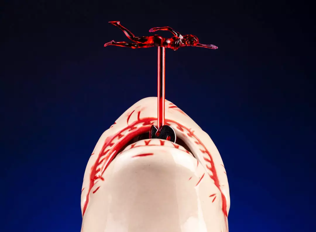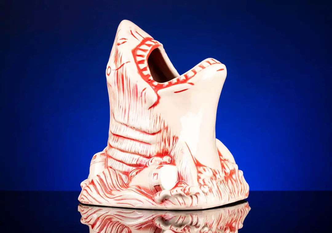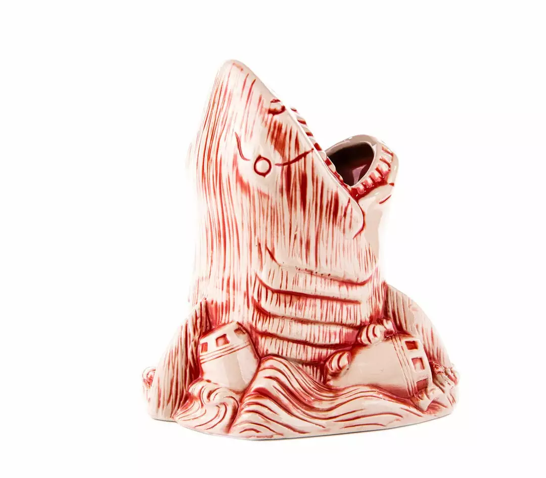 Just when you thought it was safe to close out your tab, it’s Bruce the Shark Tiki Mug from the blockbuster classic, Jaws! Bruce holds 22 ounces of chum (or whatever else you’d like fill him with), and includes a translucent red Swimmer Swizzle! With this mug, you’re gonna need a bigger shelf!