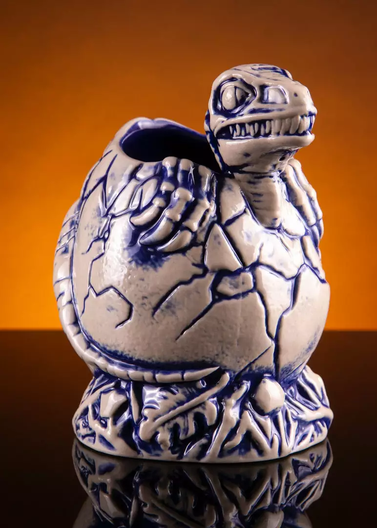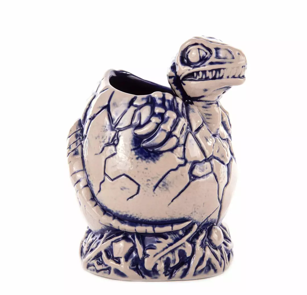 Life finds a way… to drink! Hatched in the labs at InGen, the Baby Raptor wants to share her shell with you for a delicious tropical drink. This species of mug holds approx.16 oz, and features the baby raptor breaking through her shell, sitting atop her nest, with the Jurassic Park logo embossed underneath. Say the magic word, and add this mug to your paddock today!