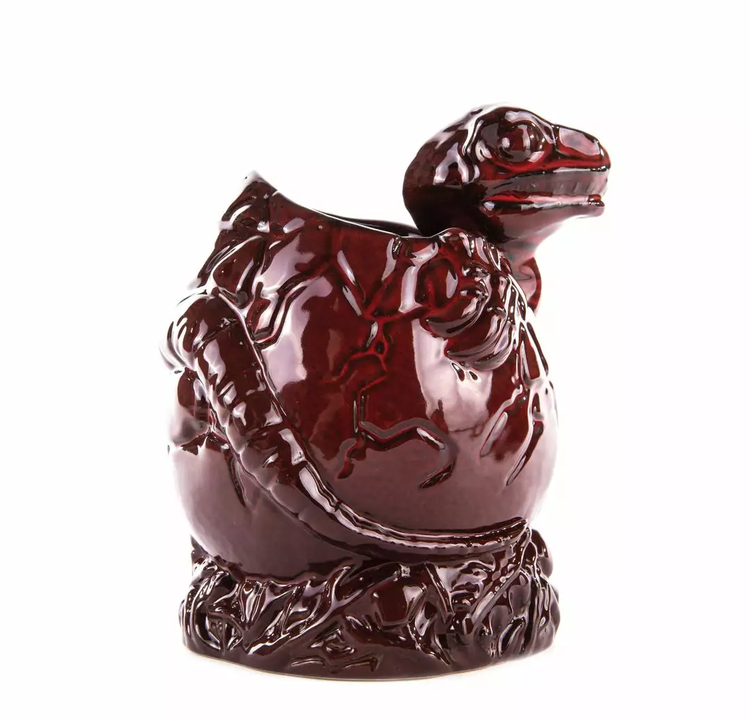 Life finds a way… to drink! Hatched in the labs at InGen, the Baby Raptor wants to share her shell with you for a delicious tropical drink. This species of mug holds approx. 16 oz, and features the baby raptor breaking through her shell, sitting atop her nest, with the Jurassic Park logo embossed underneath. Say the magic word, and add this mug to your paddock today!