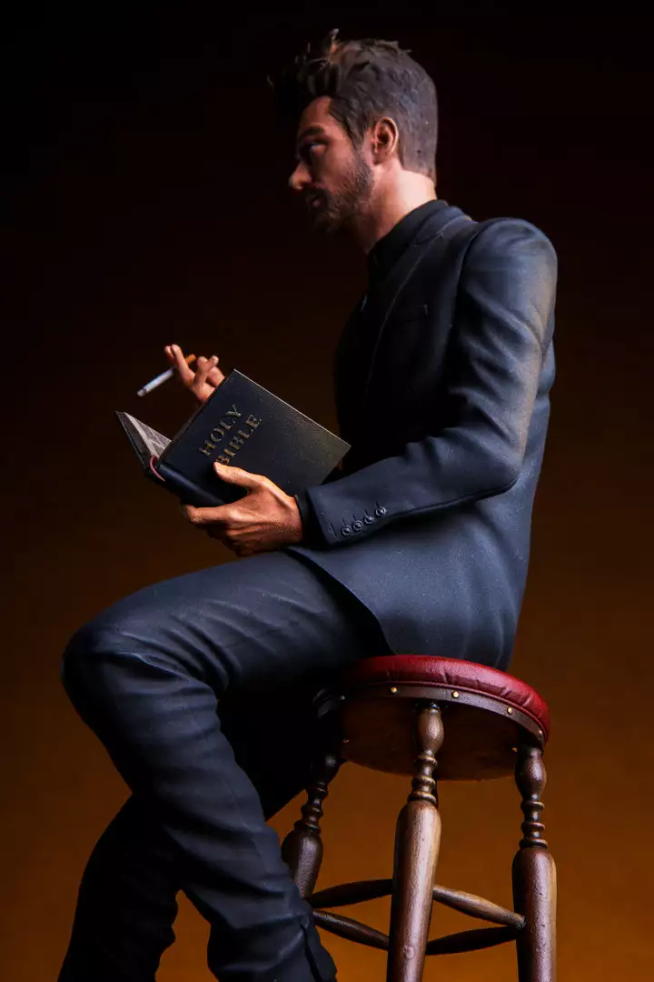 From the hit AMC series Preacher, the Jesse Custer statue is based on a painting by artist Rory Kurtz, capturing not only the physical details of the character, but painted to feature the dramatic lighting in the artwork as well. The statue depicts Jesse in repose, enjoying a smoke while brushing up on The Word, with a special coffee can hiding out behind him…