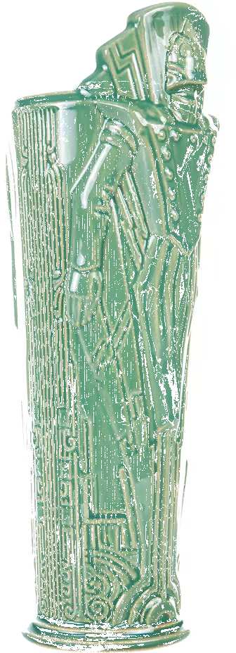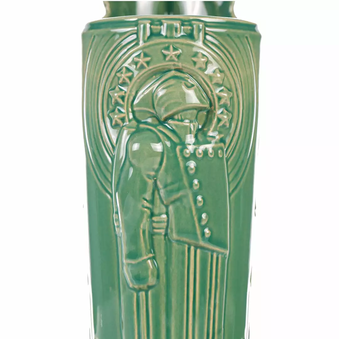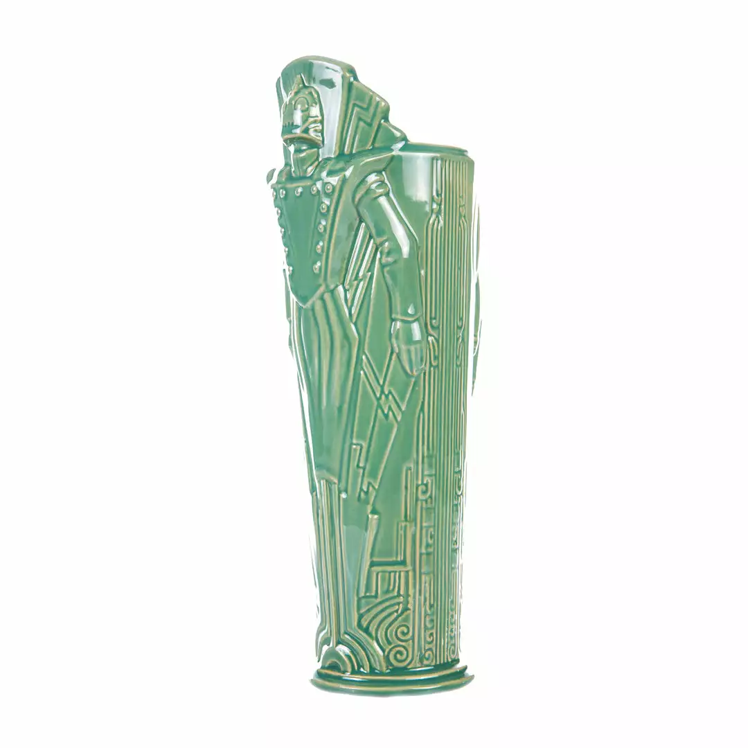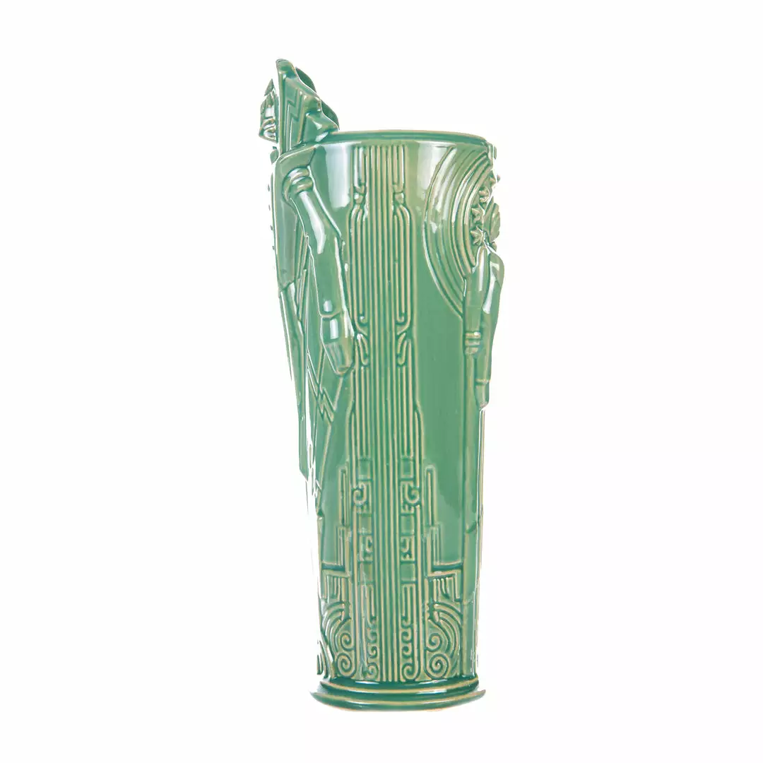 One of the greatest cinematic superhero epics of the 20th century is reborn as a stratospheric tiki mug. Created as an independent comic book by cartoonist Dave Stevens, The Rocketeer is a fictional fighter for the ages, patrolling the skies of 1940s Hollywood to keep America safe from hoodlums and madmen. This tiki treatment of the golden-domed hero was created by artists Eric Siebenaler and Brian Oskins, and no two-fisted vigilante’s drinkware collection is complete without it.
