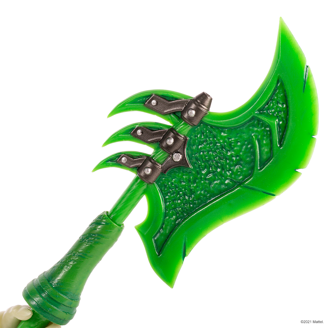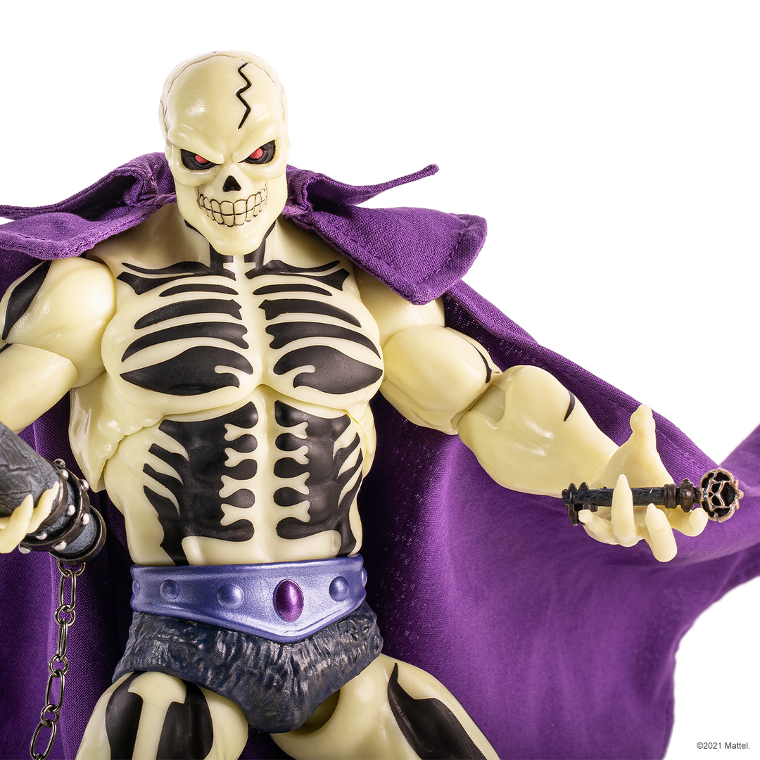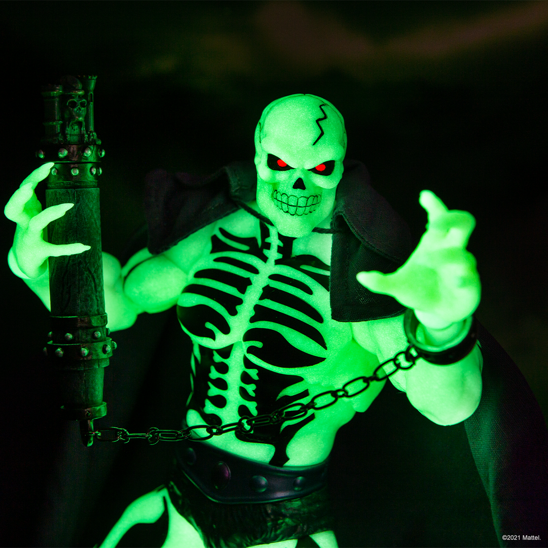 Cursed in life, frightening in death, and glowing in the darkness! Featuring over 30 points of articulation, removable/poseable fabric cape, a glow in the dark, Scythe of Doom, and more, Scareglow is the most terrifying figure this side of the 5 dimensions!
