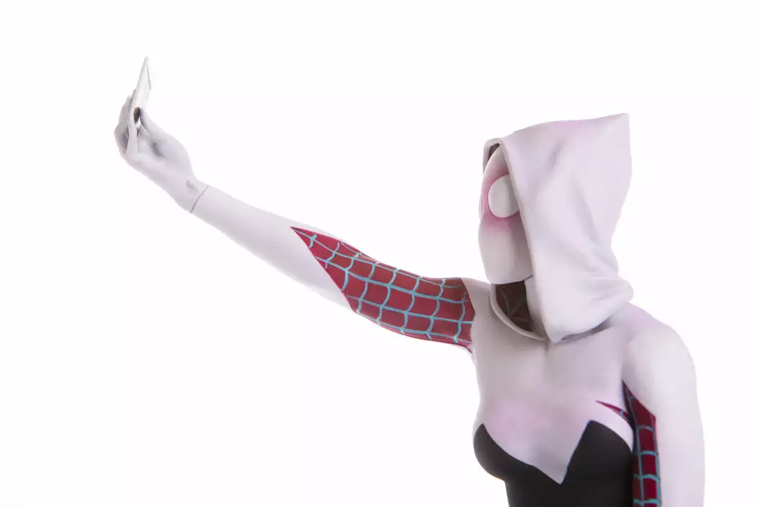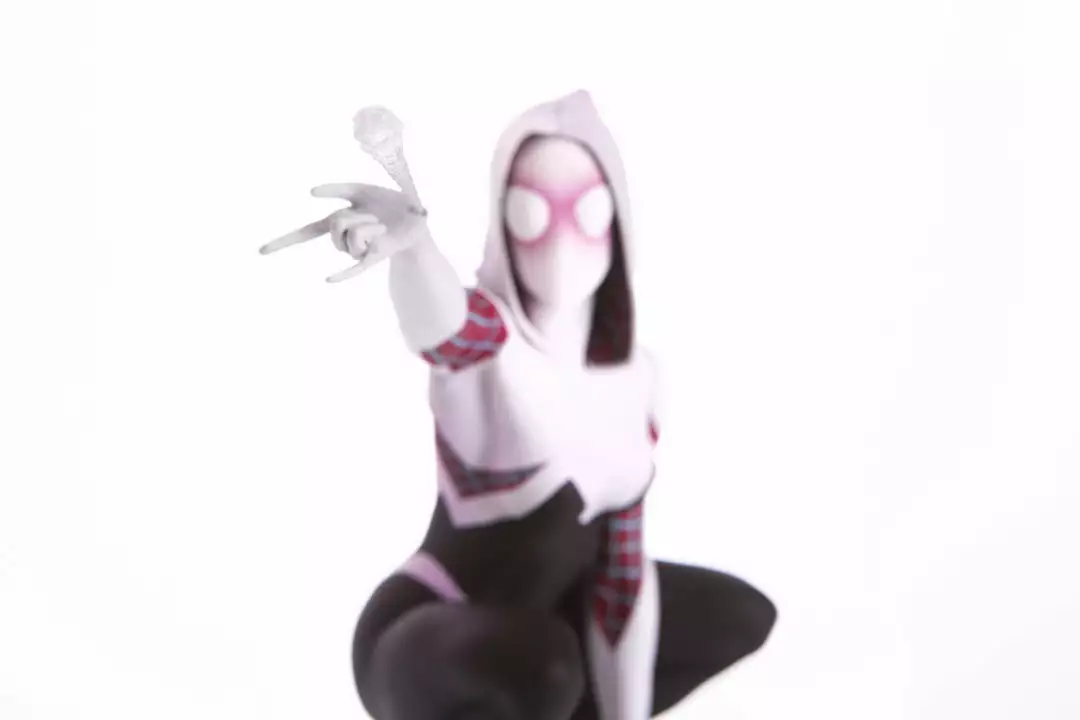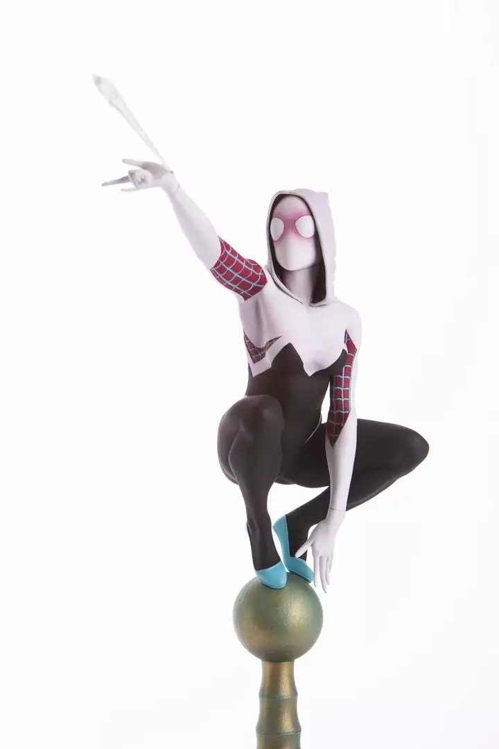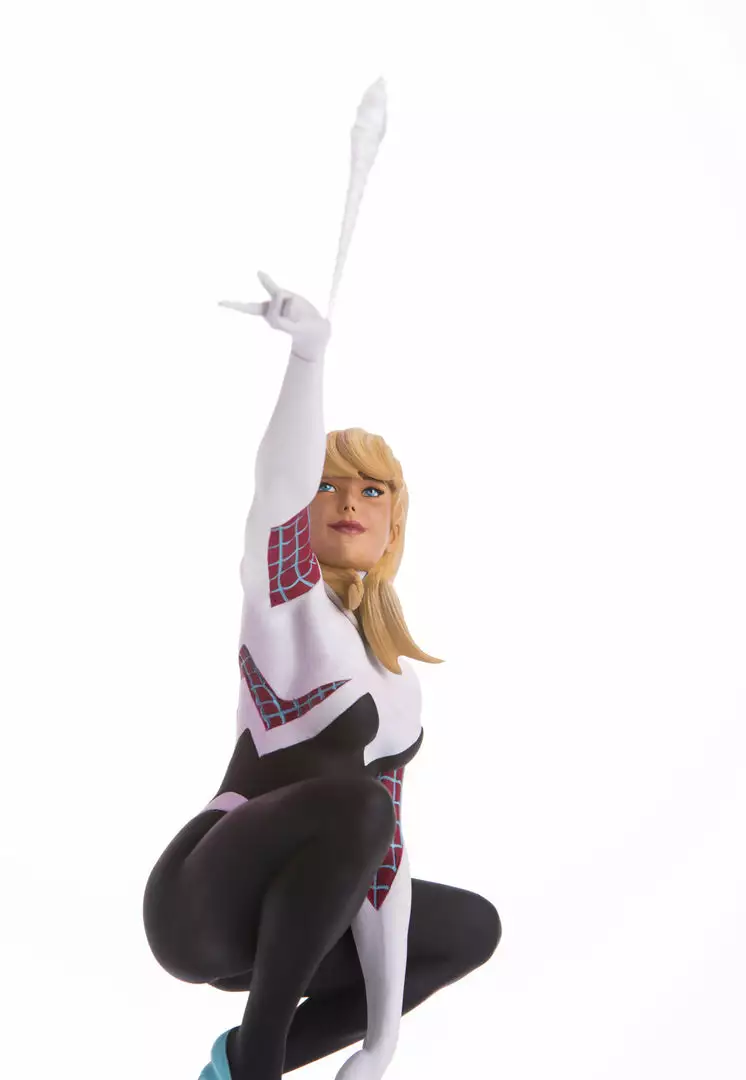 Based on Phantom City Creative’s gorgeous art print, this statue shows Spider-Gwen (aka Spider-Woman, aka Gwen Stacy) either spending a quiet moment perched atop a high-rise building, taking a selfie after a day of being a hero OR slinging a web to swing into action! It’s your choice, as she comes with interchangeable web-shooting and selfie hands!