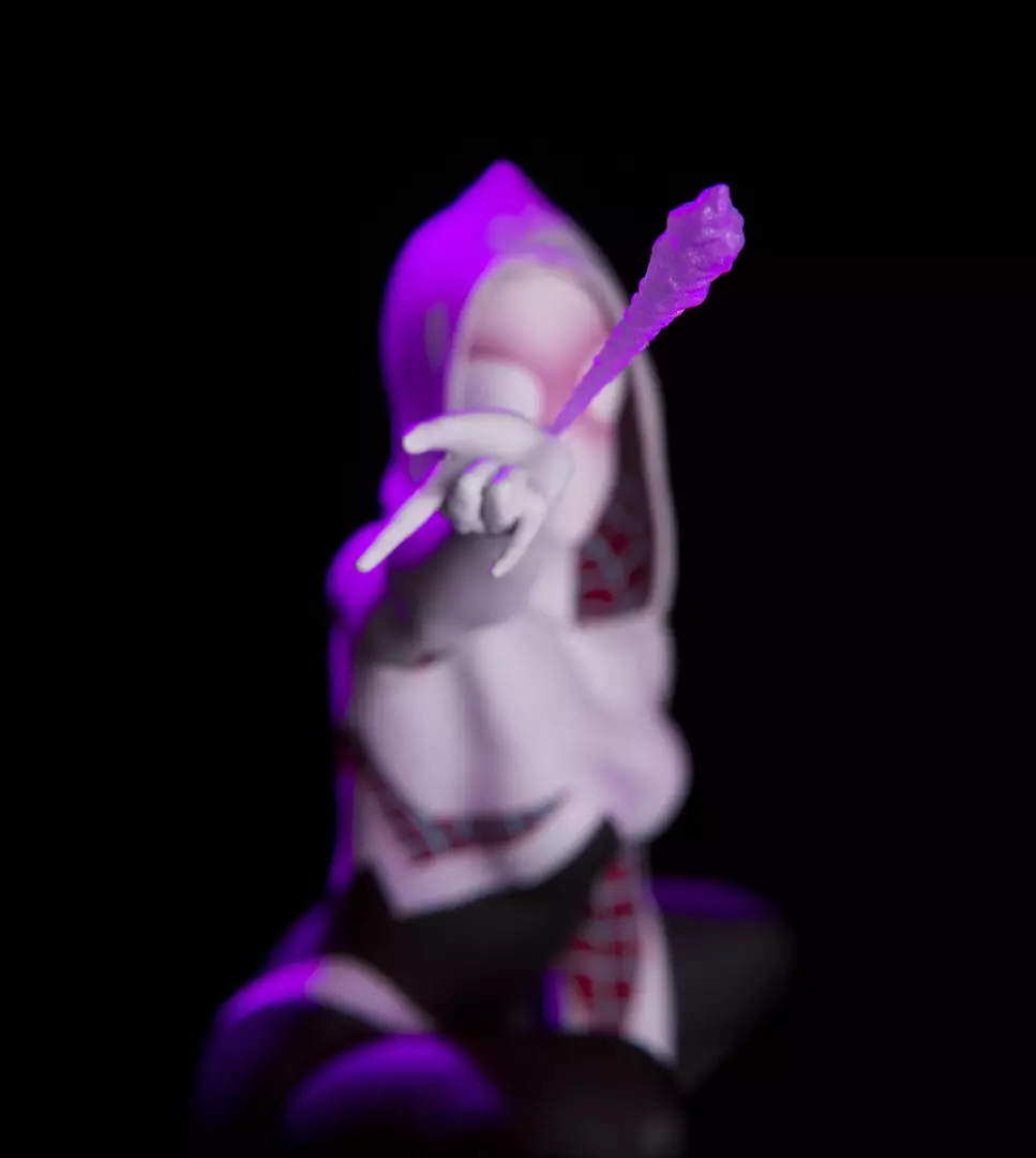 Continuing our line of 3D sculptures inspired by posters, our SPIDER-GWEN statue is brought to life with the playful colors and movement seen on Phantom City Creative’s artwork.