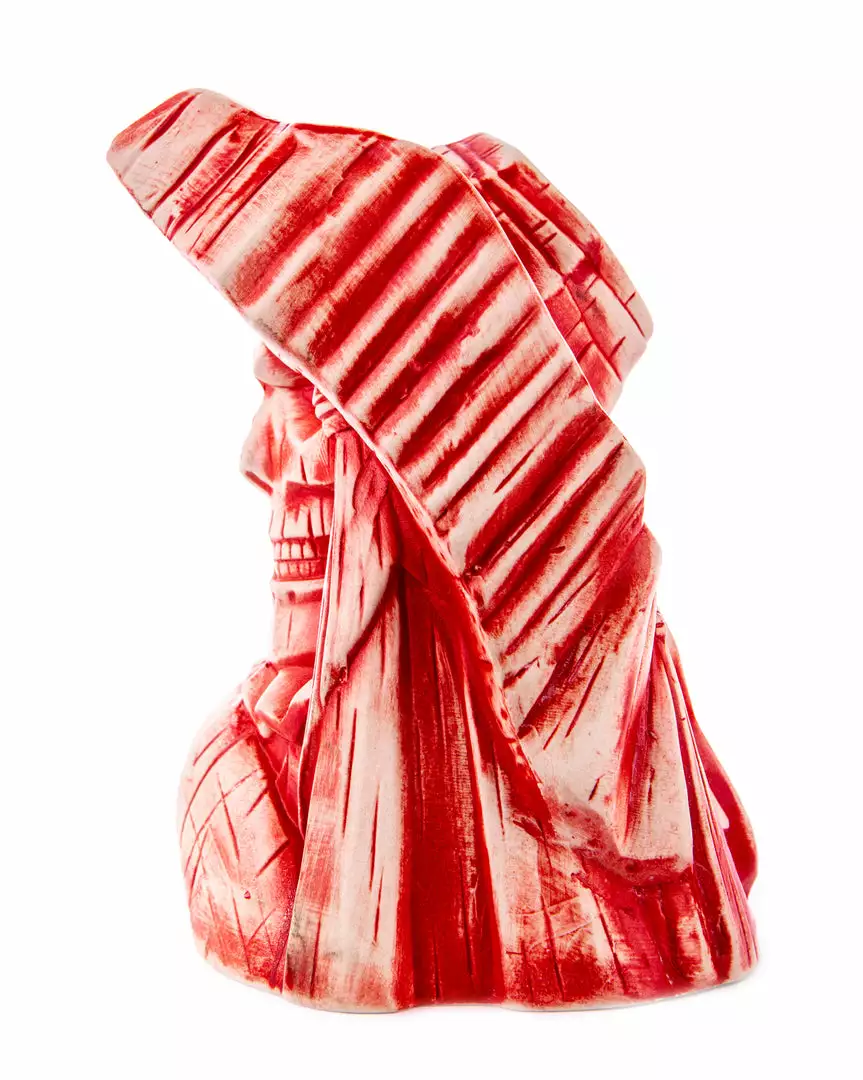 Lurking from backstage to bring you a horrifying vessel from which to savor your sinister spirits from, it’s the official Universal Monsters The Phantom of the Opera Tiki Mug! This monstrous mug is designed by the deadly Doug P’Gosh, sculpted by the mischievous Matthew Black, and produced with the help of the terrifying Tiki Farm team. The Phantom features his horrible visage on one side, a scream scene from the film on the other, and holds 16oz of the lethal liquid of your choice!