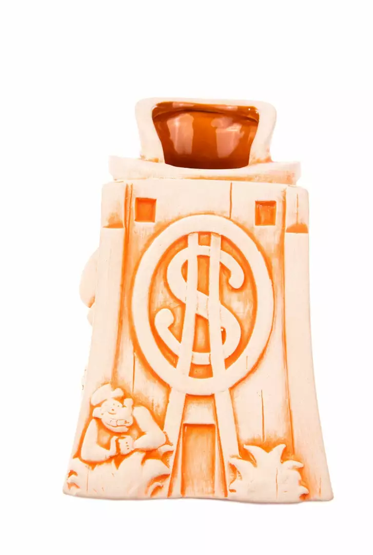 Life is like a hurricane, and speaking of hurricanes, you can pour one into the latest in our Disney Tiki Mug line- Scrooge McDuck! Scrooge, admiring his #1 Dime, also features the Money Bin on the back, with a sneaky Beagle Boy trying to get it! Uncle Scrooge, designed by Tom “Thor” Thordarson, sculpted by Tufan Sezer, and produced with help from the ducklings at Tiki Farm, holds 24oz of your most valuable liquid libation, and is perfect for hot days relaxing next to a pool of gold coins.