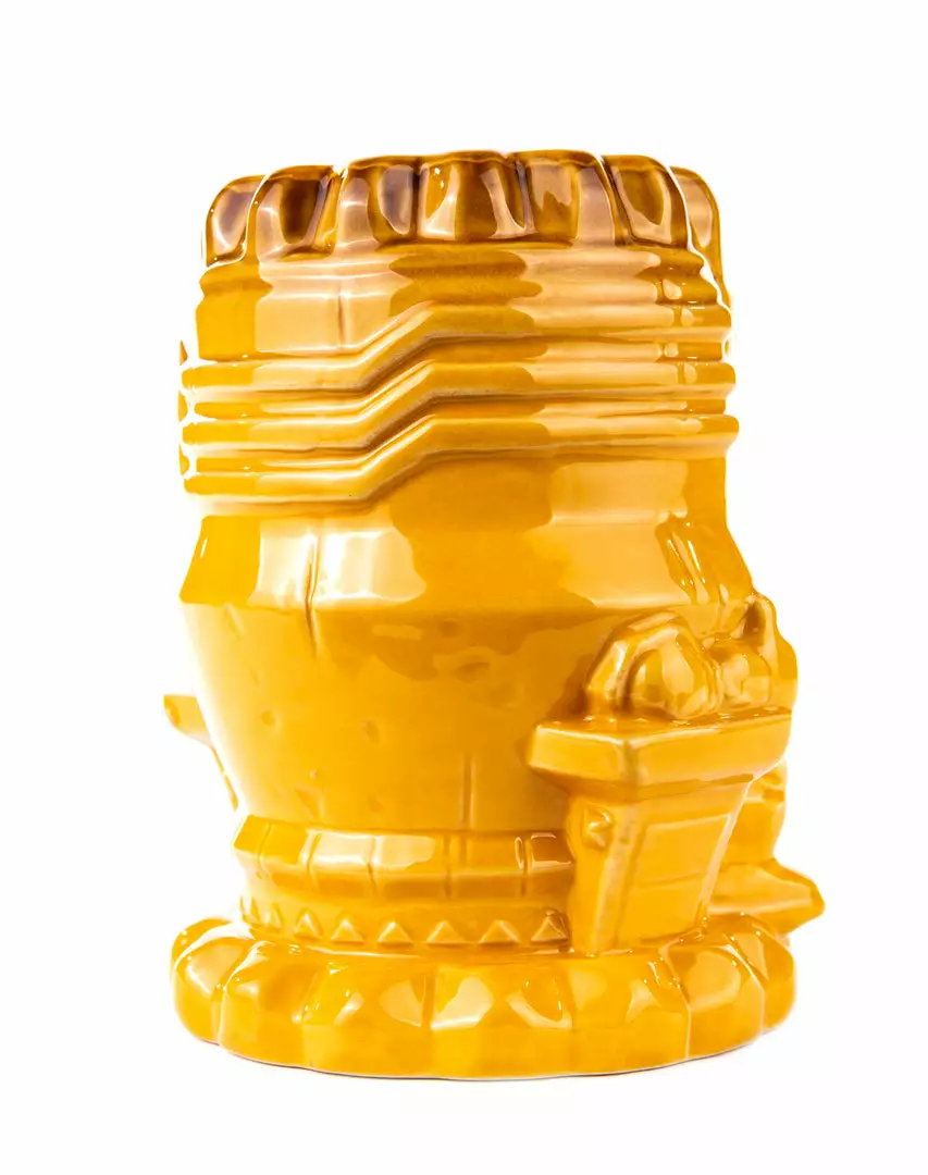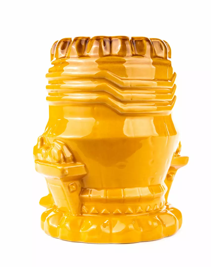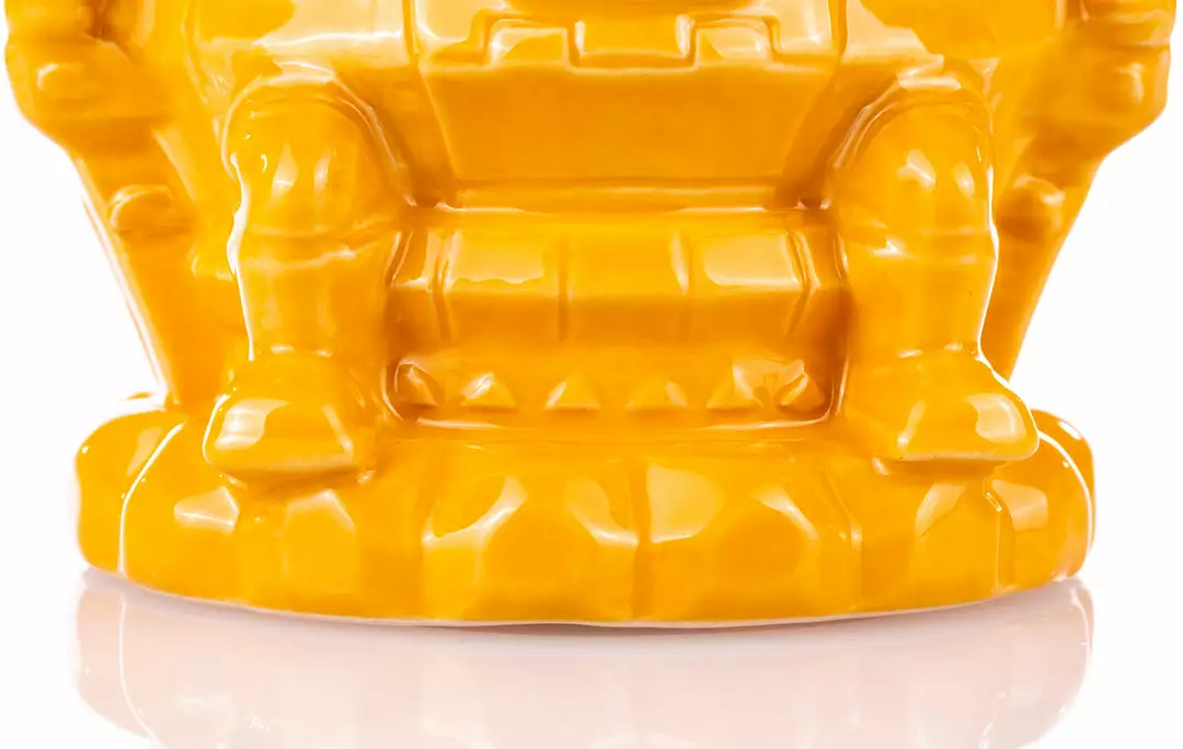 This regular edition of the MODOK Tiki Mug features a gloss Yellow with Brown-Crown glaze!