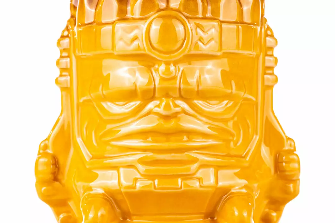 The Mechanized Organism Designed Only for Killing, or MODOK, has had his programing redesigned- now he’s a Mechanized Organism Designed Only for tiKi! Designed by Mike Bonanno & Thor, and sculpted by Tufan Sezer, and produced with help from the mechanized organisms at Tiki Farm, MODOK hold approx. 36oz for you to kill your thirst with!