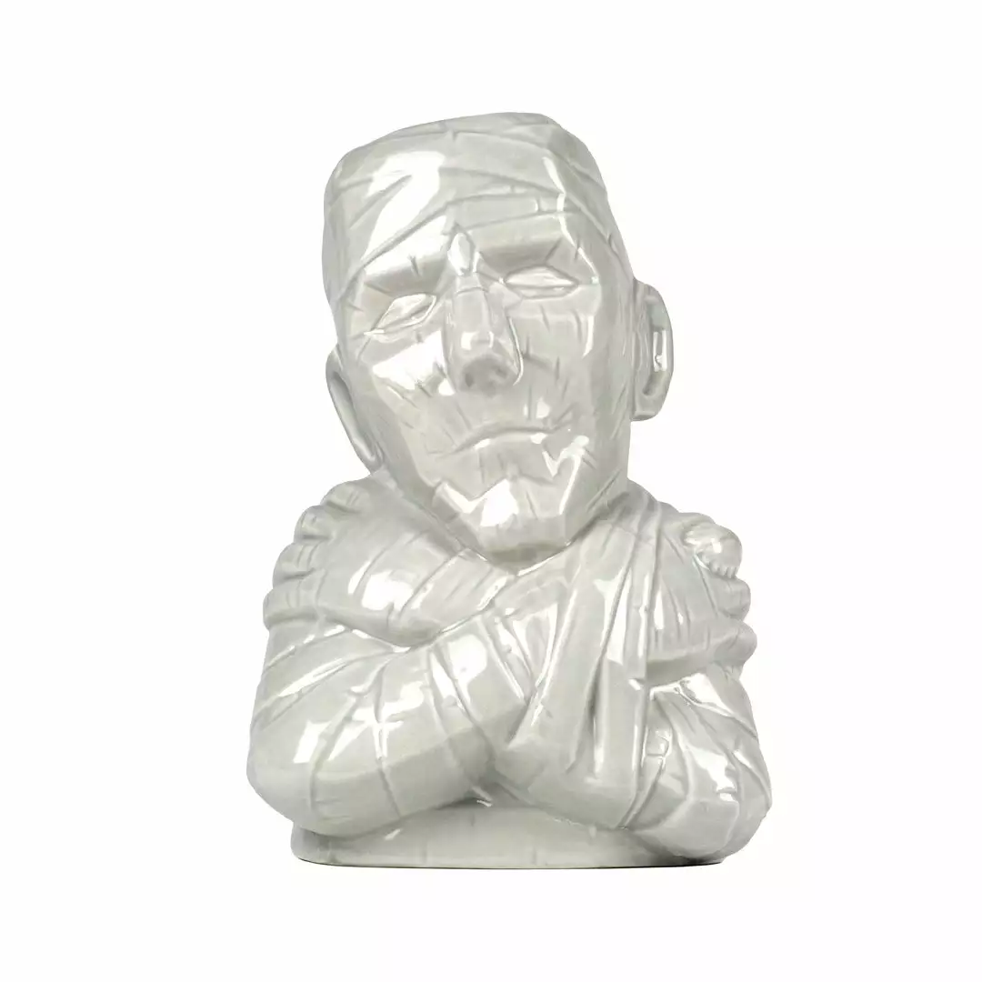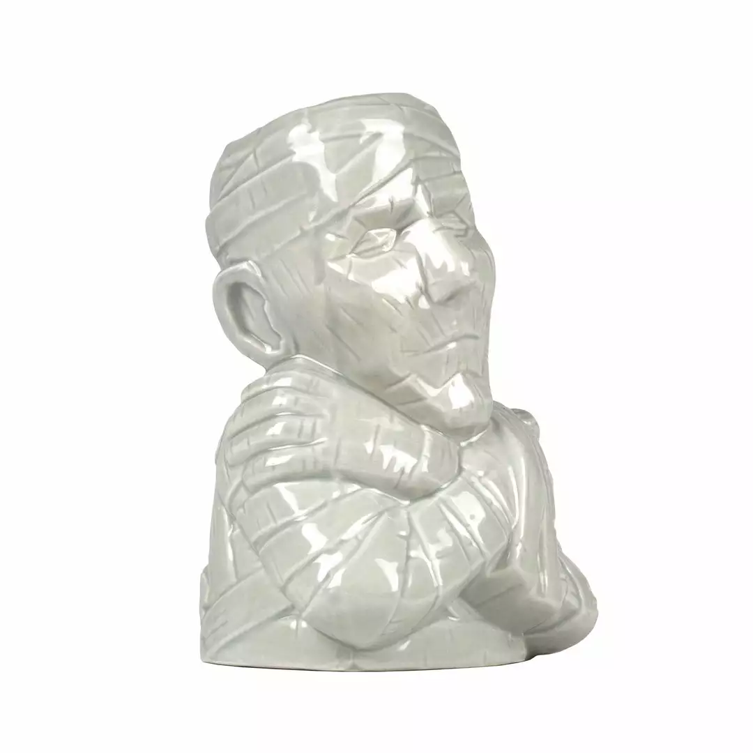 This version of The Mummy tiki features a grey glaze inspired by the classic film.