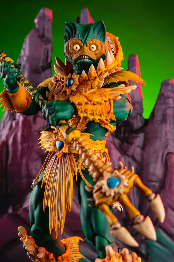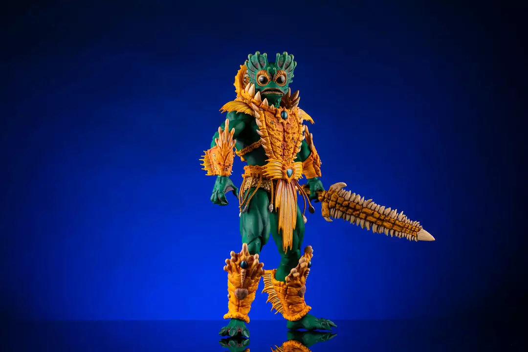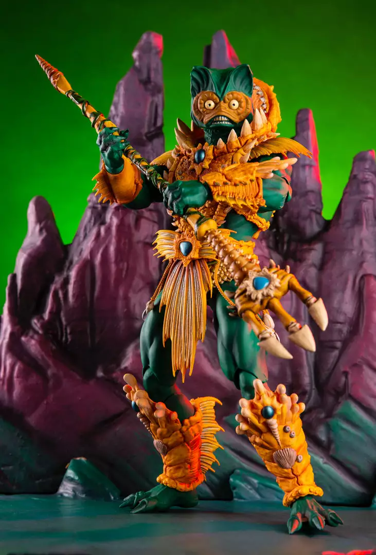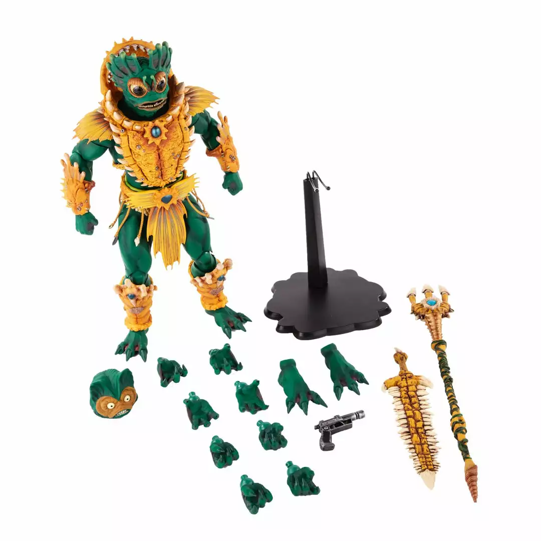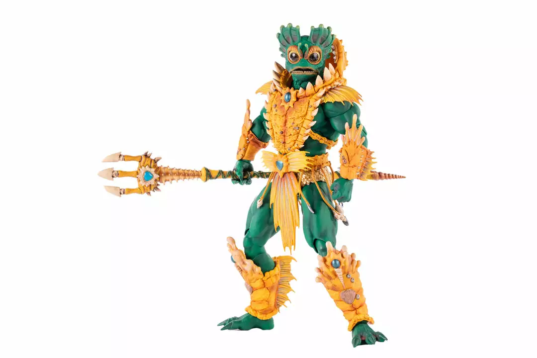 By the Power of Grayskull, you too can have the Power! Mondo is proud to bring you the next figure in our Masters of the Universe 1/6 scale line- Mer-Man! Featuring over 30 points of articulation, fish-eyes, sea-powered armor, and a lot of accessories, this is the most powerfully fishy figure you will ever find, from here to Eternia’s oceans!