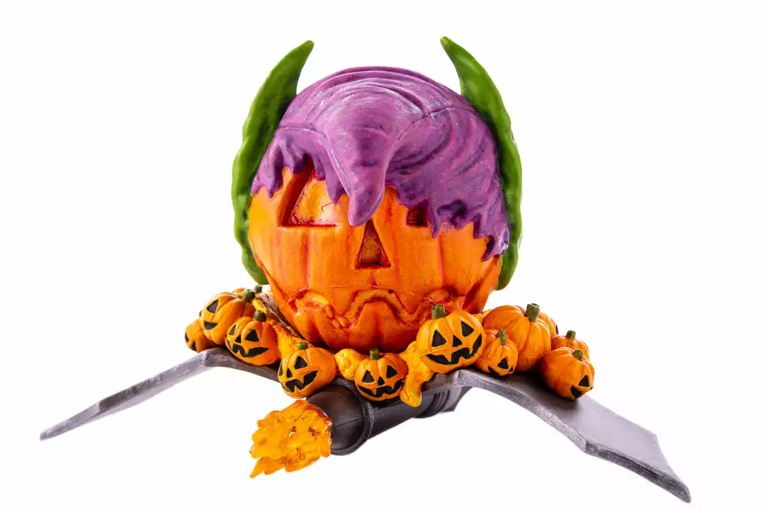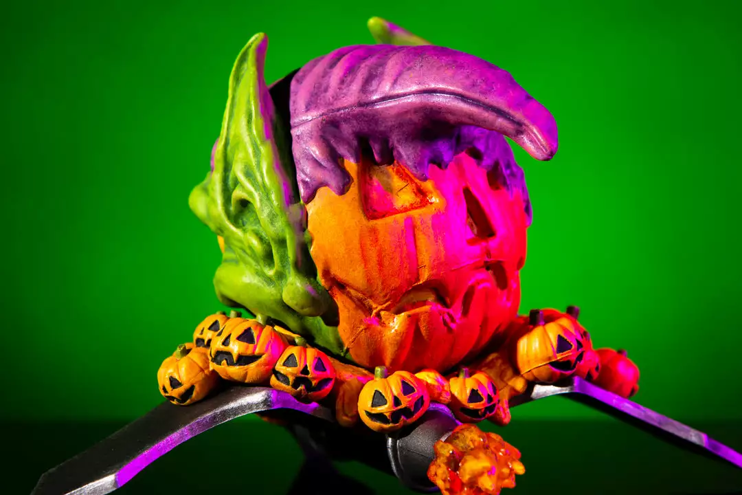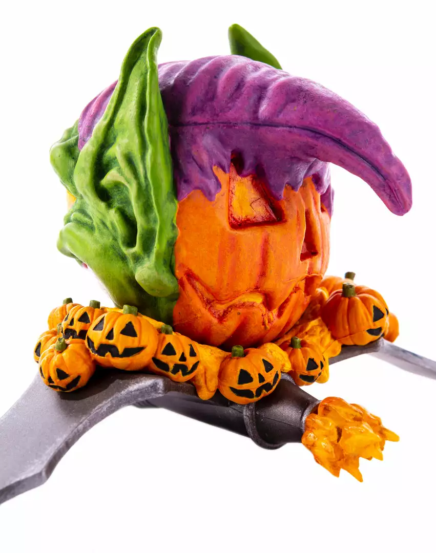This one takes the form of GREEN GOBLIN, from MARVEL COMICS! He comes to you on his SLED, looking to pelt you with pumpkin bombs. Talk about being seedy!