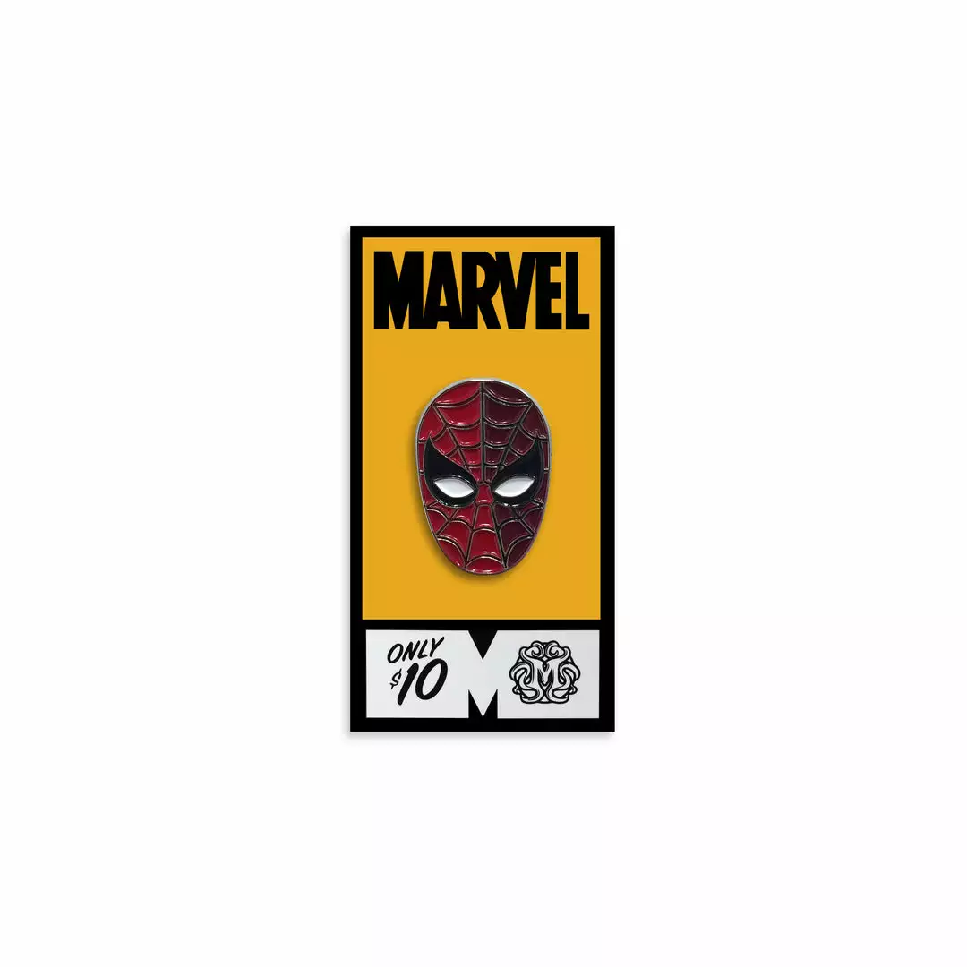 Approximately 1″ high, shiny silver nickel soft enamel pin, with a single post and butterfly clutch backing. Comes affixed to heavy card stock Marvel packaging.