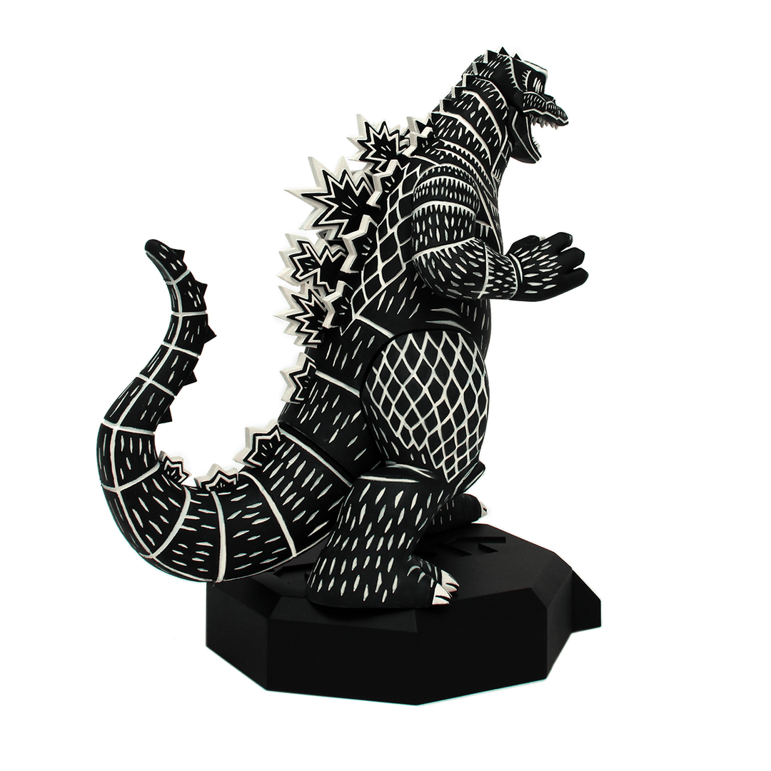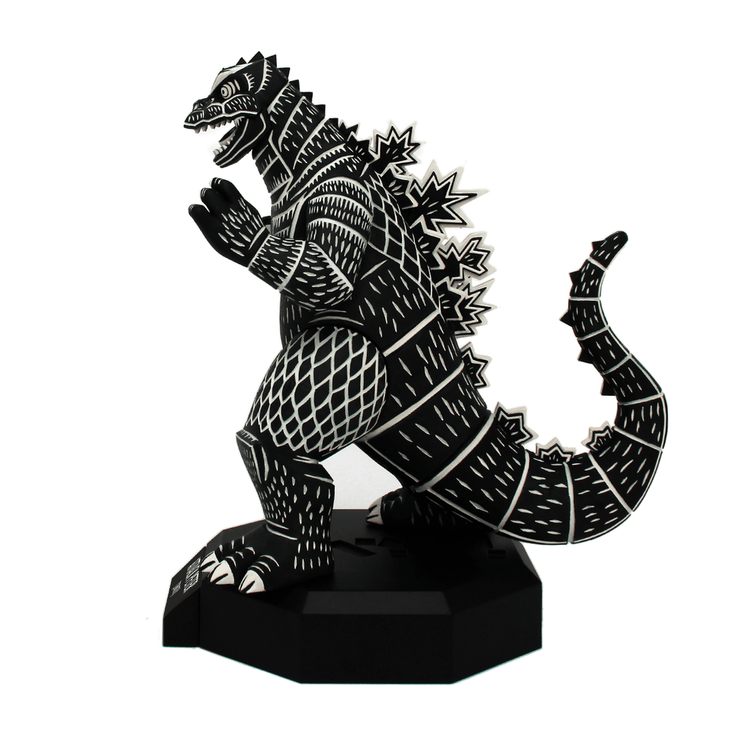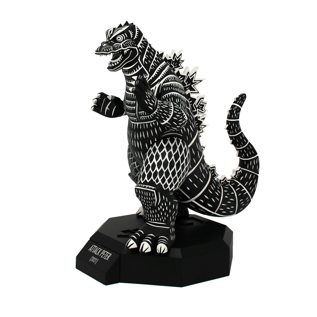 Our GODZILLA MUSEUM small-scale statue line continues Series 1 with a jaw-dropping design from Attack Peter. The linocut master has taken what he’s done on the page and expanded it into three radical dimensions. His work has already a become a staple of the Godzilla art world, so to see him take the reins on this statue is nothing short of fantastic.
