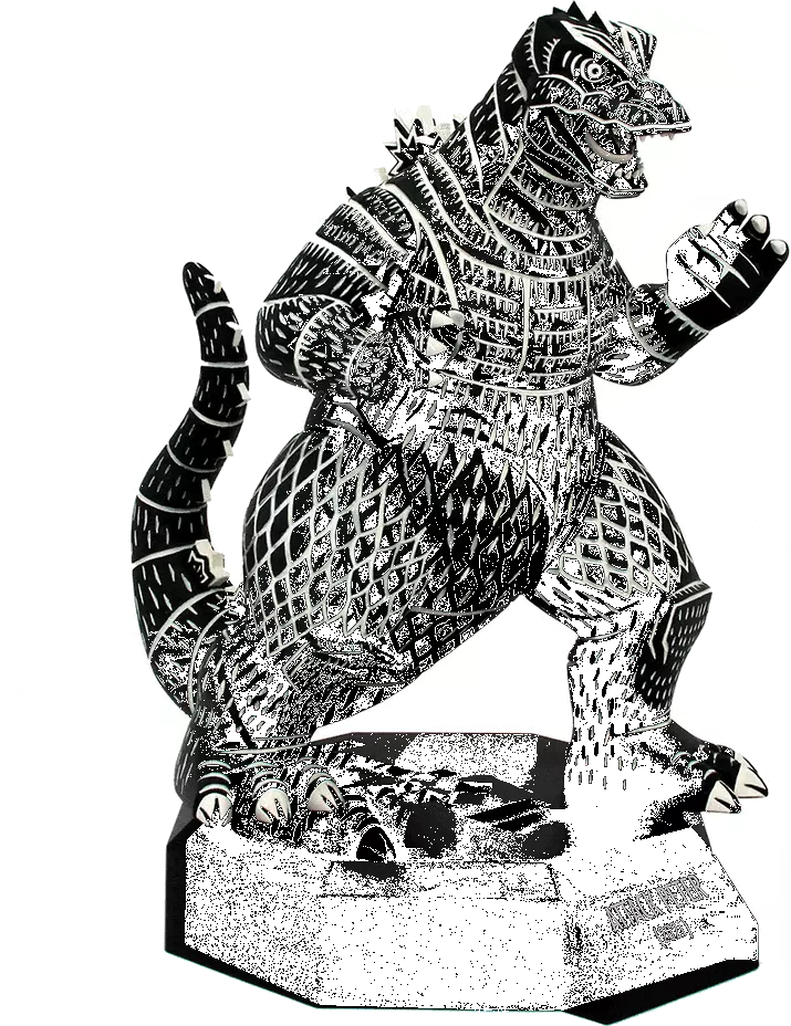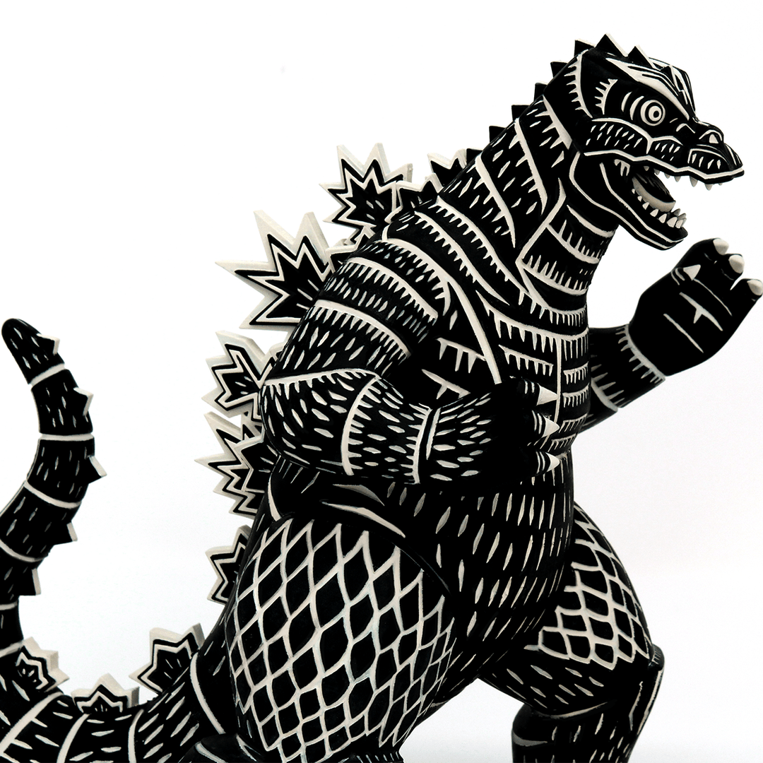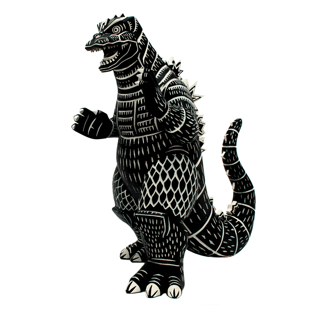 Our GODZILLA MUSEUM small-scale statue line continues Series 1 with a jaw-dropping design from Attack Peter. The linocut master has taken what he’s done on the page and expanded it into three radical dimensions. His work has already a become a staple of the Godzilla art world, so to see him take the reins on this statue is nothing short of fantastic.