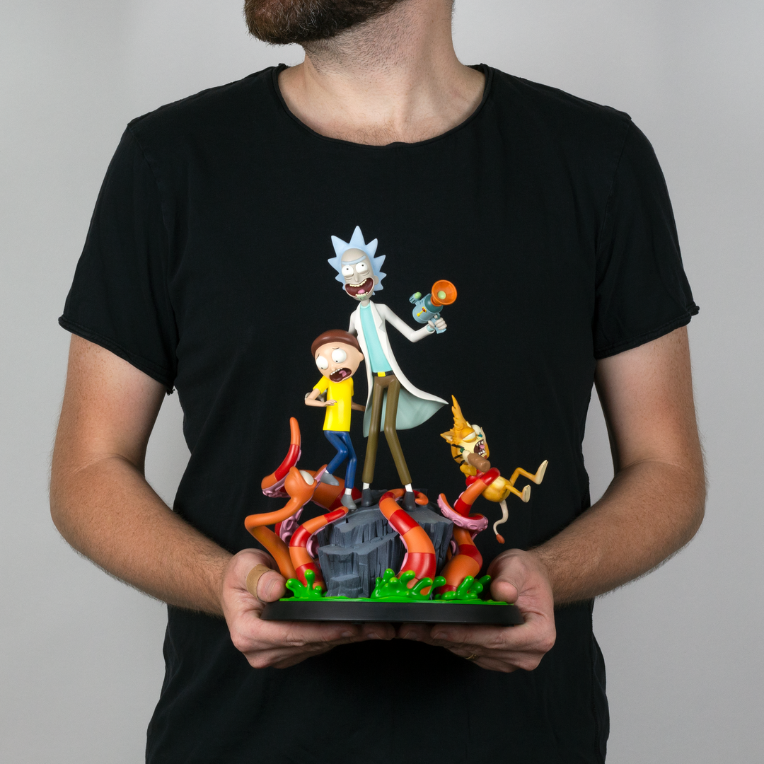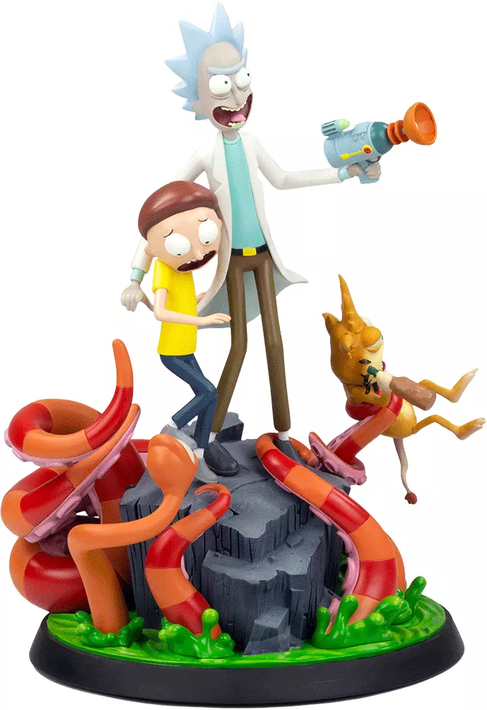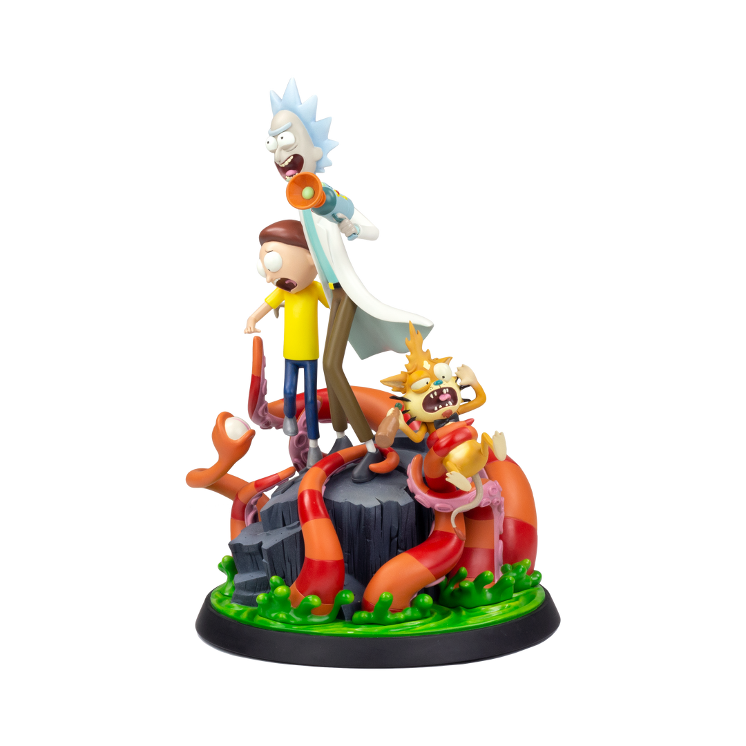 Designed by Eric Siebenaler, sculpted by Tufan Sezer, and painted by Mara Ancheta, with packing design by Florian Bertmer and Mike Bonnano. This statue lovingly brings the bonkers character design into vivid 3D, and along with Squanchy, features multiple interchangeable tentacles and hands.